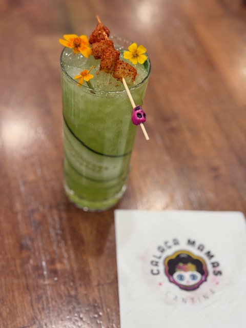 Thirsty? Look no further than their picturesque craft cocktails. The Mora Mora—a whiskey-forward, hibiscus-infused drink with muddled blackberries—and the Spice Up My Life, a cucumber-lime concoction with a kick of chile de árbol tequila, were not just flavorful but visually striking. Garnished with Día de Los Muertos skeletons perched on sticks, these drinks added to the festive atmosphere.